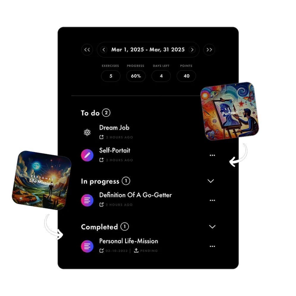 Take the first step toward growth with essential tools and features. Explorer is perfect for those beginning their journey, offering access to a selection of exercises and core tools to help you build momentum and lay the foundation for lasting transformation.